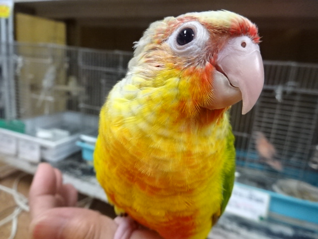 先日カゴデビューをしたばかりですが、自分でちゃんと出てきて手に乗ってくれる子です。