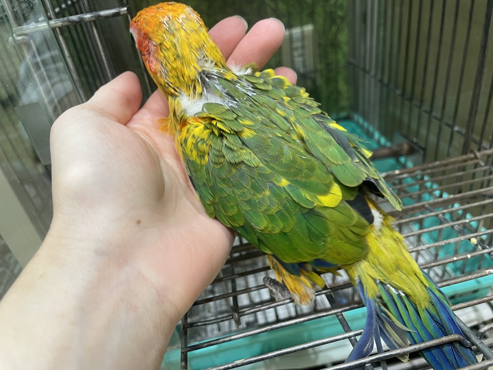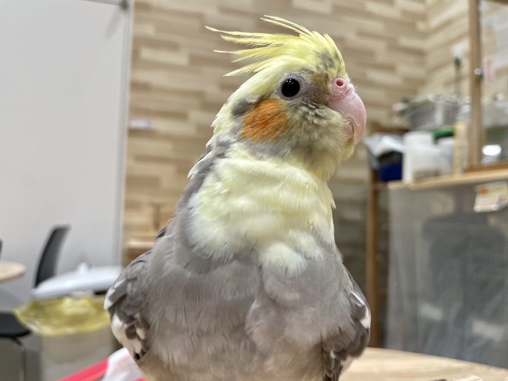 最近、鳥さんのお部屋デビューしたばかりですが場所が変わっても動じずにペレットにもあっという間に切り替わってくれました。ケージから出る時はちょっとビックリですが撫でられるのは大好きな甘えん坊優しいウロコ君です。