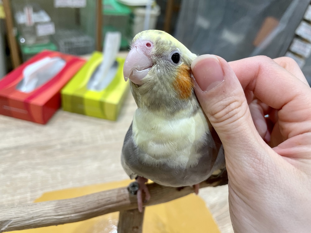 もちもち触るのはOKらしい👌まだ指先はNGだけどね💦どんな触られ方もマスターしような…! #オカメインコ #こんぱまる名古屋店 pic.twitter.com/y7ldFTmCw3